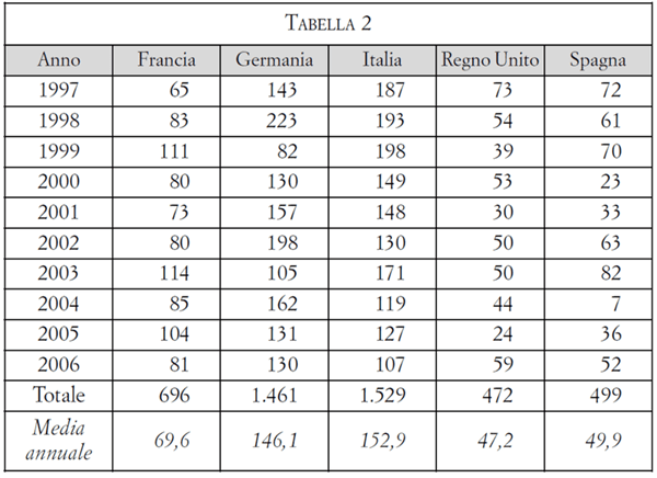 (Fonte: Di Porto V. I numeri delle leggi. Un percorso tra le statistiche delle legislature repubblicane. Il Filangeri, Quaderno 2007, pp 179-200)