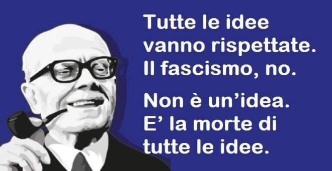 Diceva Sandro Pertini: «Io non sono credente, ma rispetto la fede dei credenti; io sono socialista, ma rispetto la fede politica degli altri e la discuto, polemizzo con loro, ma loro sono padroni di esprimere liberamente il pensiero. Il fascismo no, il fascismo lo combatto con altro animo: il fascismo non può essere considerato una fede politica; il fascismo è l’antitesi delle fedi politiche, il fascismo è in contrasto con le vere fedi politiche perché il fascismo opprimeva chi non la pensava come lui».