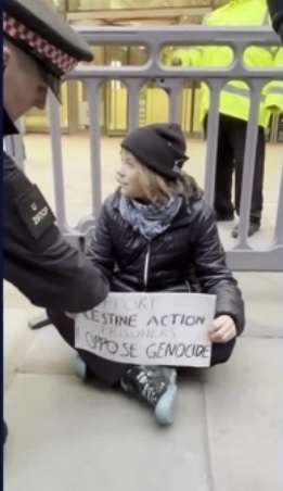 Solidarietà alla compagna Greta Thunberg, arrestata in Inghilterra per aver difeso i diritti umani del popolo palestinese.